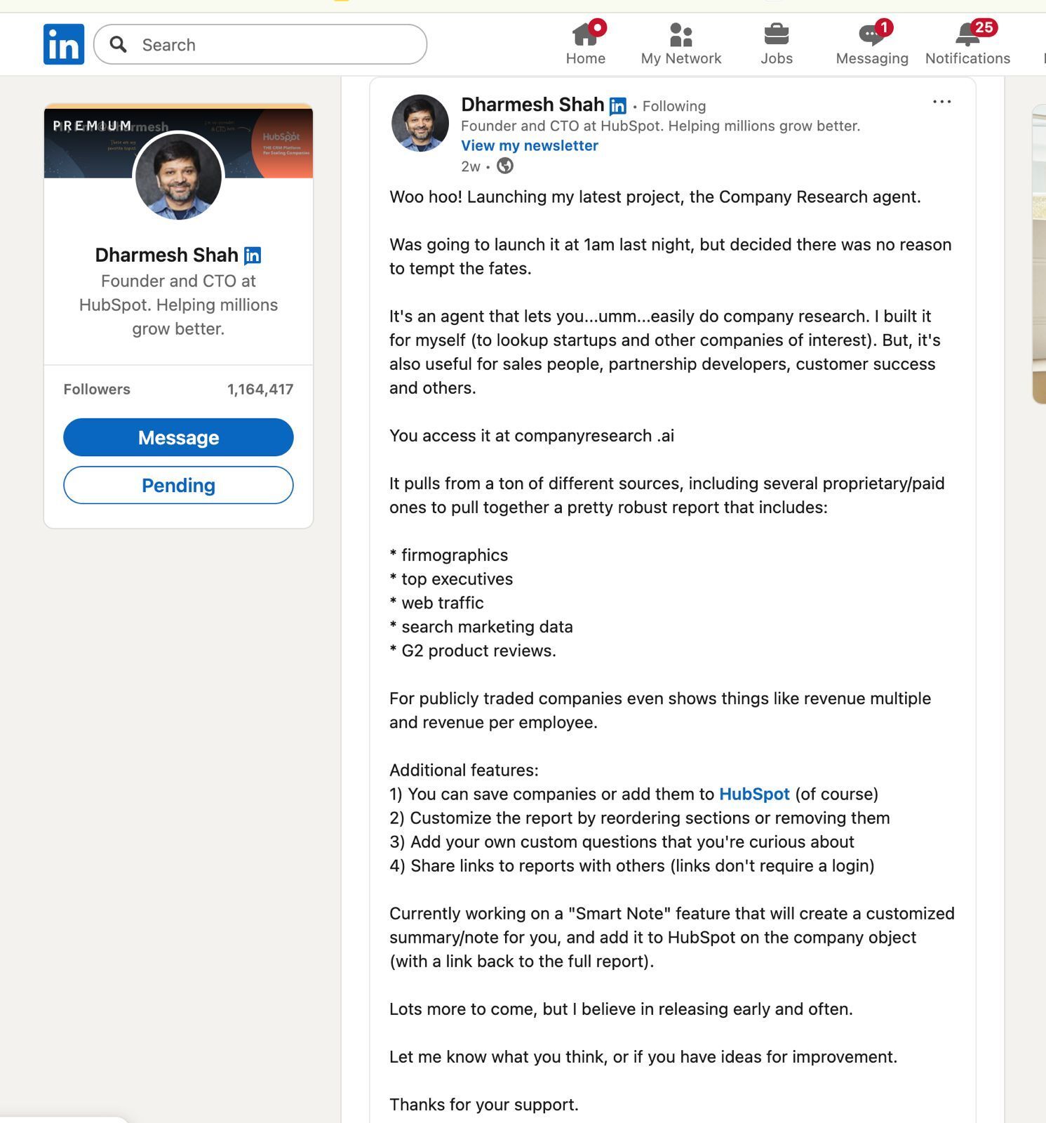 Three weeks ago, I wrote a post breaking down Dharmesh Shah’s LinkedIn strategy.